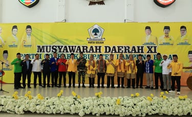 Dalam sambutannya, Bupati Lampung Barat menegaskan bahwa Musyawarah Daerah ini bukan sekadar agenda rutin organisasi, melainkan sebuah momentum strategis yang sangat menentukan arah perjalanan dan masa depan Partai Golkar di Kabupaten Lampung Barat.
