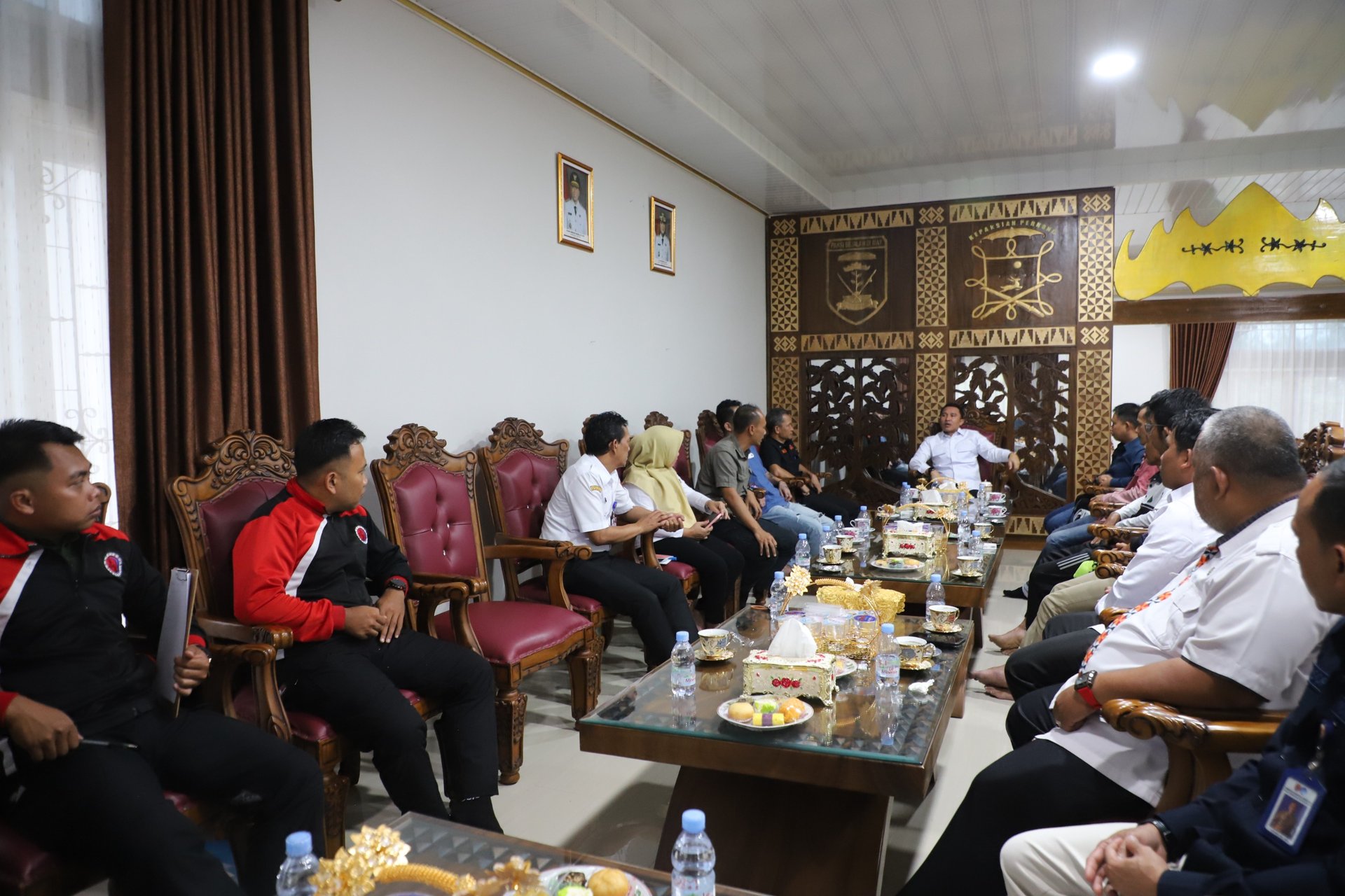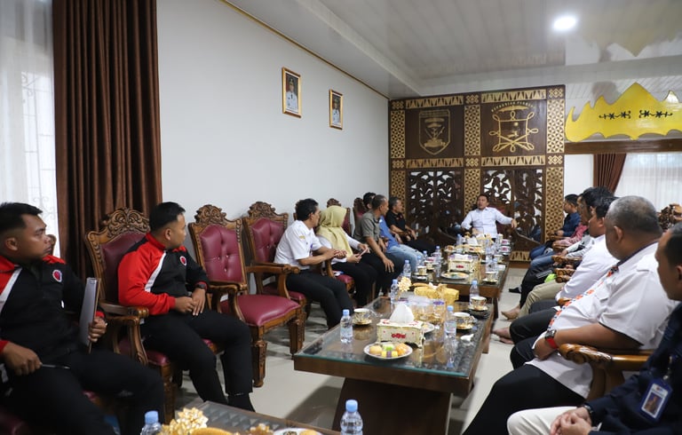 LAMPUNG BARAT -- Bupati Lampung Barat, Parosil Mabsus, yang juga menjabat sebagai Ketua KONI Lampung Barat, menggelar audiensi bersama jajaran pengurus KONI di Lamban Dinas Bupati, Pekon Kubu Perahu, Kecamatan Balik Bukit, Rabu (22/4/2025).