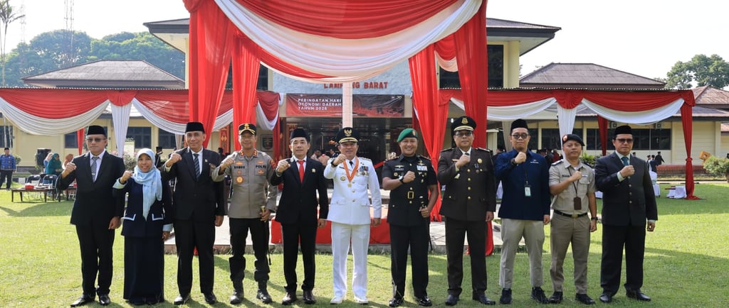 Lampung Barat - Pemerintah Kabupaten Lampung menggelar upacara peringatan Hari Otonomi Daerah (Otda) ke-30, bertempat di halaman Kantor Bupati, Senin 27 April 2026.